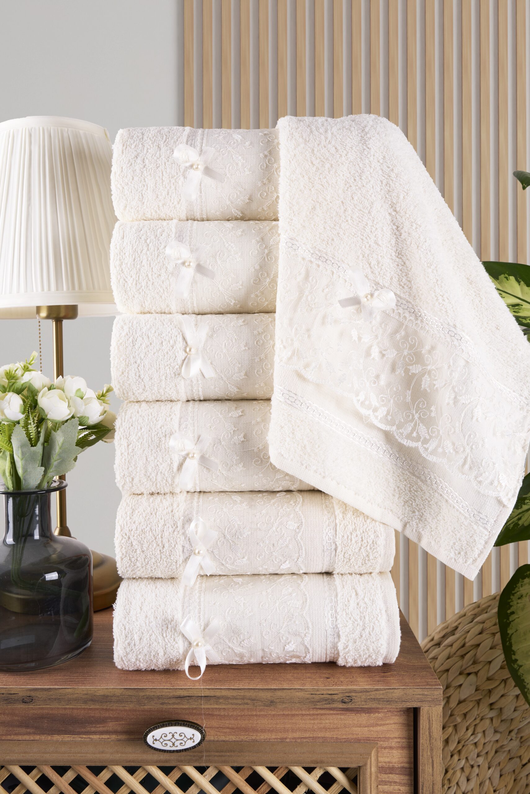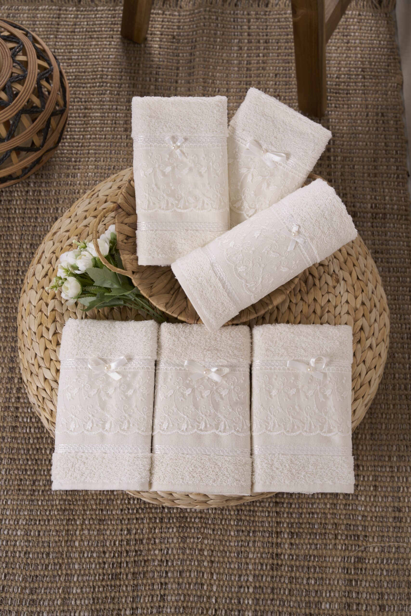 6’lı Güpürlü Kurdeleli El&yüz Havlusu Seti | Beyaz Starya